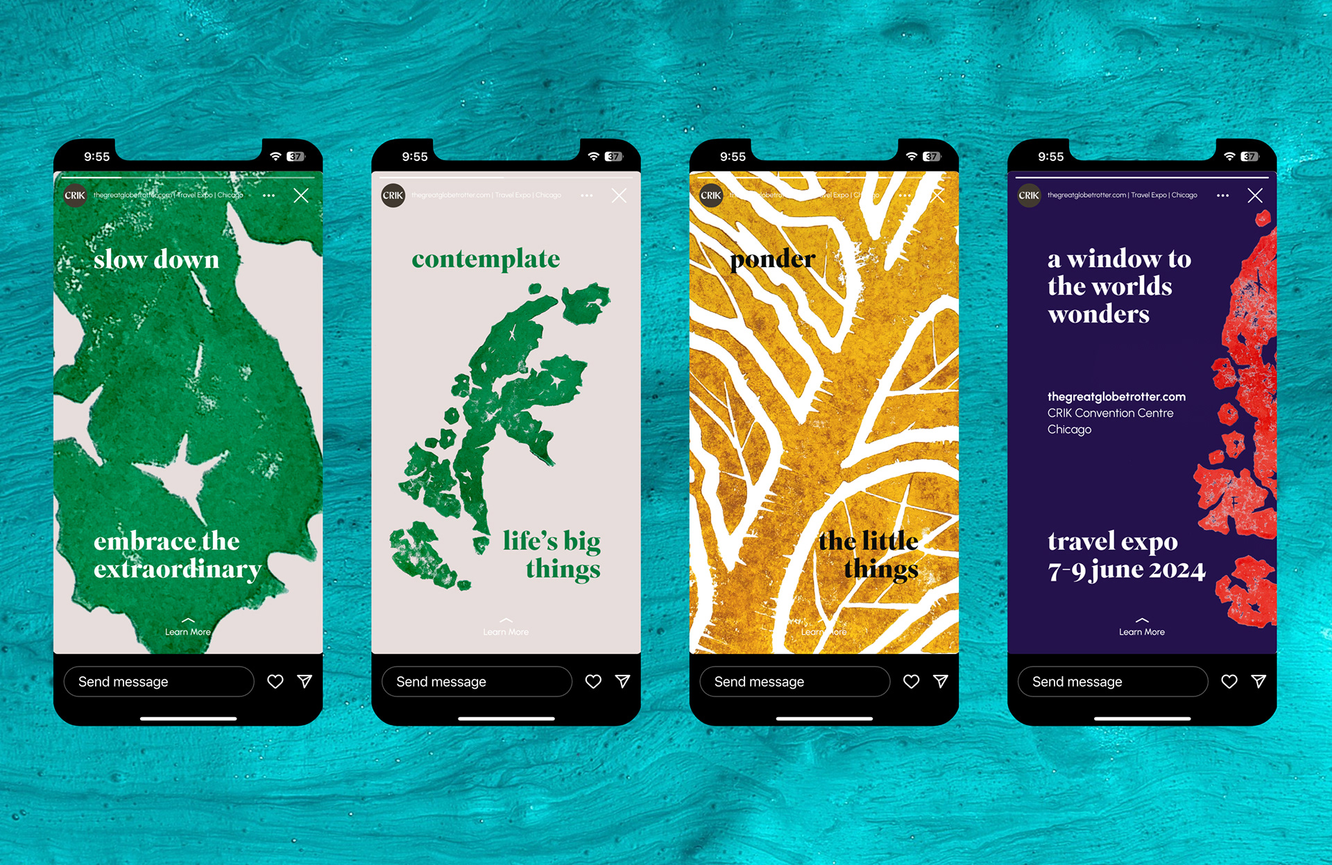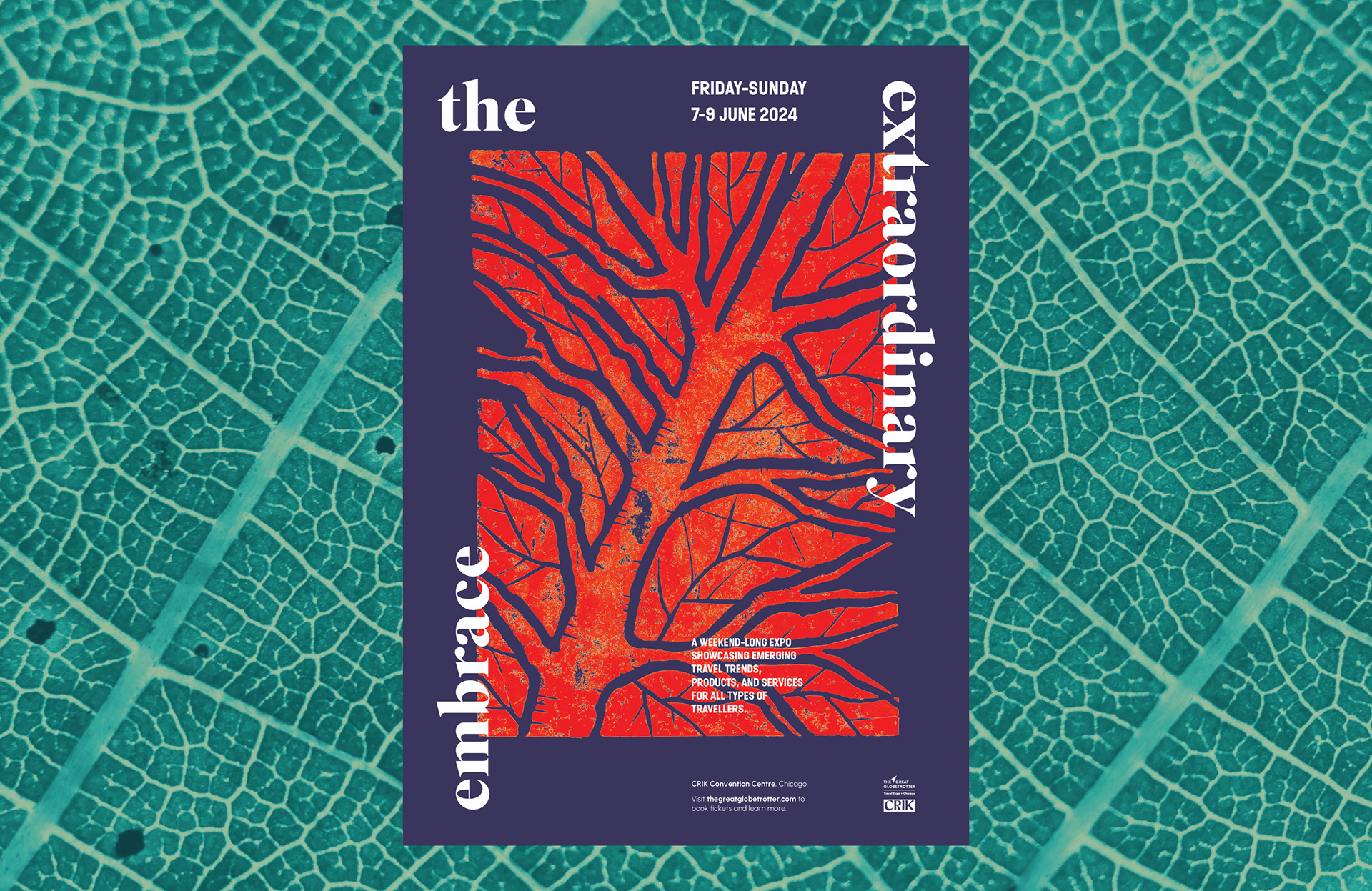 Event branding for a Travel Expo event hosted in Chicago to entice and excite people to embark on their next adventure. The design incorporates lino prints to capture the vivid details experienced whilst travelling.